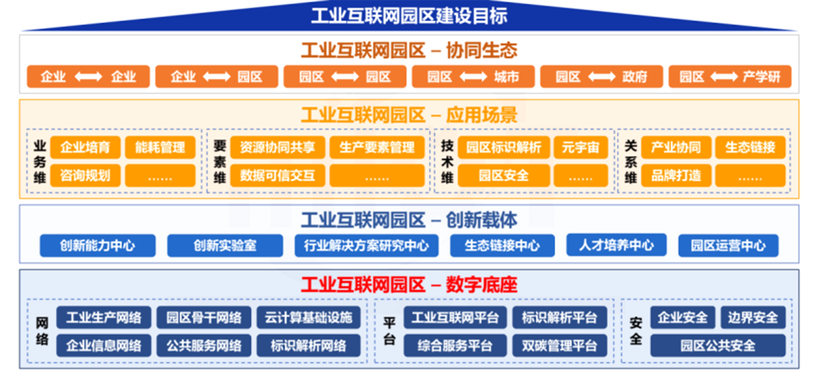 围绕“数字经济赋能新制造”,推进工业互联网园区数据融合应用,以园区为载体构建产业集群、产业链,为园区产业和企业固链、 强链、 补链,打造政府、园区、企业共建共享、共生共荣的“工业互联网家园”。